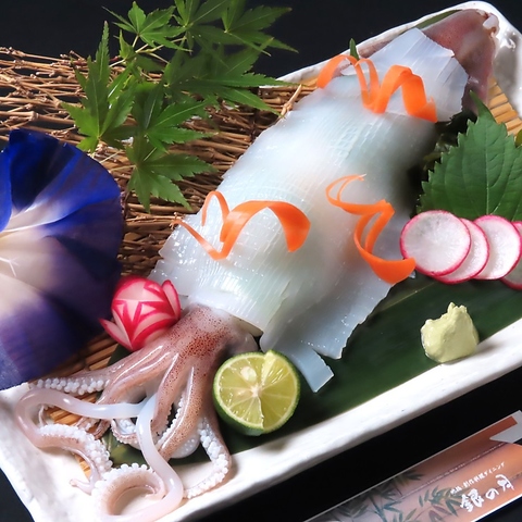 漁船の上で瞬間凍結された“船凍イカ”を使用。獲れたての美味しさを閉じ込めたままお届けする、極上の姿造りです。身の甘みと、コリコリとした食感が絶品。噛むほどに広がる旨みと甘みを、ぜひお楽しみください。海の恵みをそのまま味わえる、自慢の一皿です。