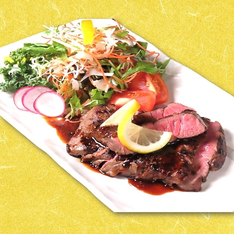厳選したジューシーな牛肉を贅沢に焼き上げた「牛ステーキ」。肉本来の旨味を引き立てる当店自慢の自家製ステーキソースが、ひと口ごとに深い味わいを演出します。香ばしく焼かれた表面と、柔らかくジューシーな中身のコントラストが絶妙。