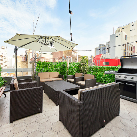 屋上に開放的なプライベート空間をご用意しました♪周りを気にせず貸切でBBQ、ビアガーデンをお楽しみいただけます◎定番のバーベキューセットから、海鮮や黒毛和牛がついた豪華なセットまでご用意♪ビール、ハイボール、サワーの生樽の販売もございますので手ぶらでも本格BBQを楽しめます♪