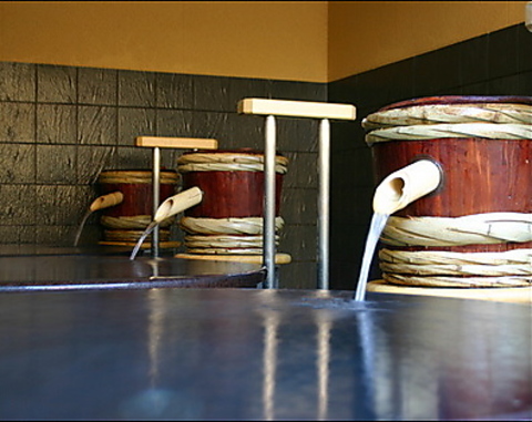 信楽焼の壺浴槽に、地元金沢の老舗酒造『福光屋』様から直送された純米酒を投入し、千倍に希釈したまろやかな湯です。清浄効果、保湿効果、保温効果、リラックス効果に優れ美肌にも最適です。天然温泉と純米酒風呂を交互に入浴することにより、その相乗効果で寒い時期に特に保温効果が持続します。