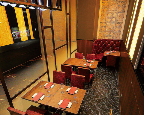 梅田の雰囲気を感じられる高い天井と大きな窓のあるテラス席は開放感抜群。季節を感じながらお食事をお楽しみください。女子会や記念日のご利用にも最適です。