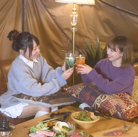 | テーブル | 4名様×1 | テント内でBBQができちゃうお席!ドームテント付きローテーブルで半個室感を演出!※テント内飲食可 |
