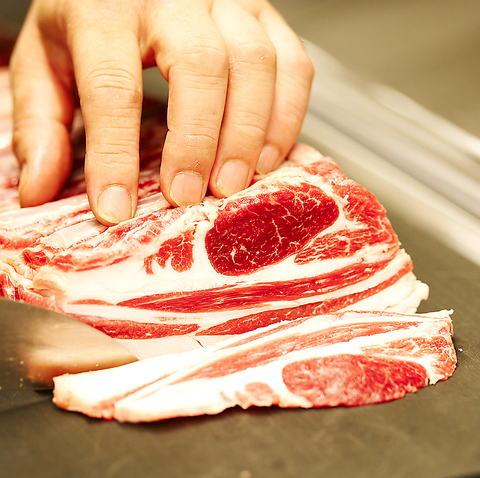 注文受けてから手ぎりで提供するので綺麗なお肉です