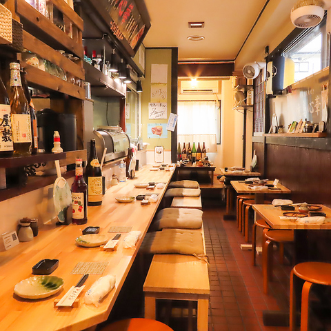 【目の前で焼き上げる臨場感あふれるカウンター席!】最大10名様まで利用できるカウンター席では、仕事帰りや空き時間にふらっと立ち寄るのにも最適です。串を目の前で焼き上げる光景を楽しめます。店主の人柄も抜群で、お一人様でも友人とでも気軽に楽しむことができる居心地の良さがあります★ぜひ一度お立ち寄りください