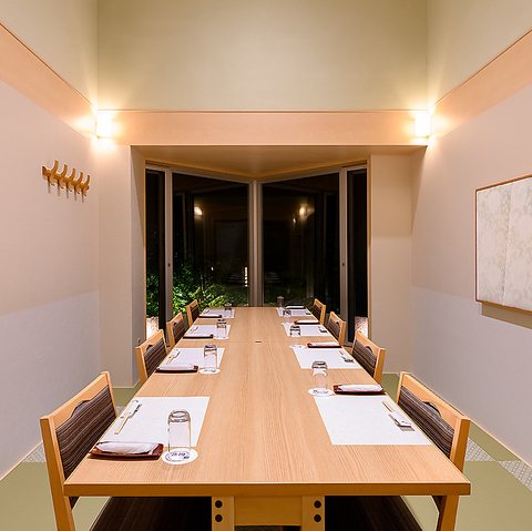 【温かみのある落ち着いた空間】お席は全て完全個室でご用意。皆様だけの時間を皆様だけの空間でゆっくりお過ごし頂けます。木を基調にした店内は和洋が合わさった清潔感のある空間です。窓も大きく開放的で大きな池もご覧頂けますので、自然も感じて頂ける優しい空間です◇どうぞ当店でごゆっくりお過ごしください。