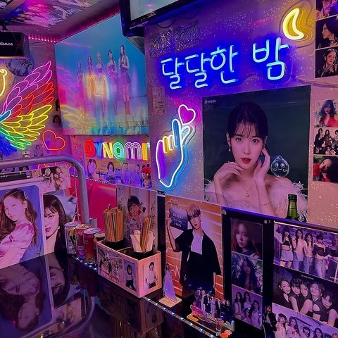 韓国をイメージした店内。こじんまりとした、隠れ家的な雰囲気が人気!店内。ポップでインスタ映えの空間に、自然と気分もアガります♪ 常連さんも韓国好きでいい方ばかりです!リピート率がとても高いんです♪おひとり様でのご来店も多いのです!某有名KPOP事務所所属の方も撮影で足を運んで頂いたこともあるんですよ!