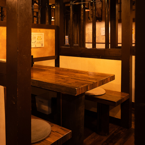4人掛けのテーブルは女子会はもちろん、各種飲み会や宴会にも使い勝手◎入った瞬間に和の雰囲気を楽しめる内観に仕上げております。店内は、木の温もりを感じる和モダンなデザイン。落ち着いた照明と洗練されたインテリアが、心地よい時間を演出します。デートや女子会、接待にも最適な空間です。
