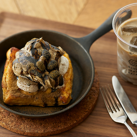 厚めにスライスしたパンをじっくりと南部鉄器のスキレットで焼き上げた、表面はかりっと香ばしく 内側はプリンのようなもっちり食感が自慢のこだわりフレンチトーストです♪詳細は料理ページにてご確認ください◎