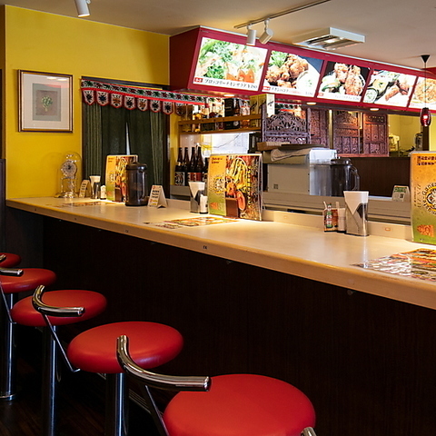 【お洒落なこだわりの異国空間】お一人様も利用しやすいカウンター席あり!ポップな色使いが印象的な、お洒落で異国情緒あふれる空間が広がっております。お一人様や少人数のお客様でも気軽にご利用いただけるカウンター席がございますので、カフェのような感覚で、ランチやディナーシーンに是非お立ち寄りくださいませ♪