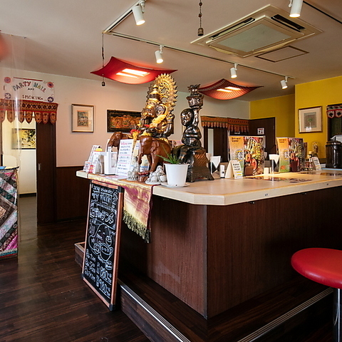 オーナーこだわりの備品が飾られたアジアンな空間のカウンター席です。異国情緒あふれる雰囲気の中、本格インド料理を味わえます♪お一人様や少人数でのご来店もお待ちしております!
