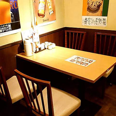 使い勝手の良い4名様用のテーブル席を4卓ご用意しております♪仕事仲間とのランチやディナー、カジュアルな会食など、様々なシーンでご利用いただけます。リーズナブルで豊富な単品料理をご用意しております!ゆったりとした空間で、新鮮な旬の食材を使った美味しい町和食を心ゆくまでご堪能ください。