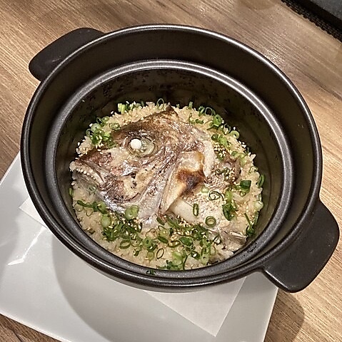当店一押し土鍋ご飯!香ばしく丁寧に焼き上げた旬の食材を贅沢に使用した、旨みたっぷりの土鍋ご飯です。ご注文をいただいてから土鍋で丁寧に炊き上げるため、お米一粒一粒に鯛の豊かな旨みがしっかりと染み込み、ふっくらと香り高く仕上がります。蓋を開けた瞬間にふわっと広がる香ばしい香りが食欲をそそる逸品です。