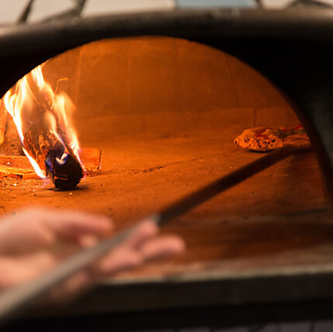 床やワインの木箱、薪などから木の温もりが溢れ、柔らかな照明が店内を包みます。ピッツァ職人が薪窯でピッツァを焼き上げる様子や、シェフが料理を仕上げる臨場感が楽しめるカウンター席もございます。ライブ感あふれるオープンキッチンを眺めながら、出来立ての絶品料理を五感でご堪能ください。