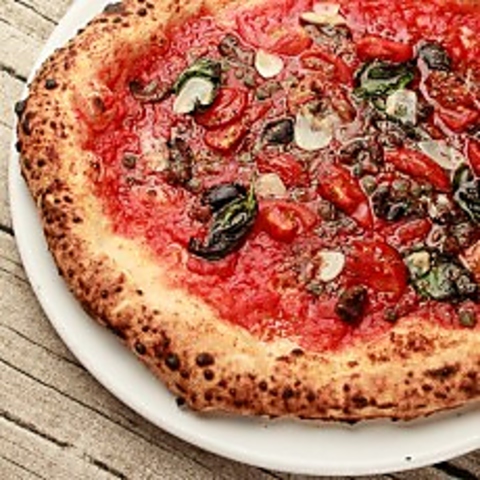 ピッツァイオーロが薪窯で焼き上げる、約30種類の本格ナポリピッツァをご用意しております。定番のマルゲリータは1850円(税込)、とろーりチーズがたまらないクワトロフォルマッジは2100円(税込)など種類も豊富です。南イタリアの食材を使用した職人渾身のスペシャルピッツァは、一度お試しいただきたい味わいです。