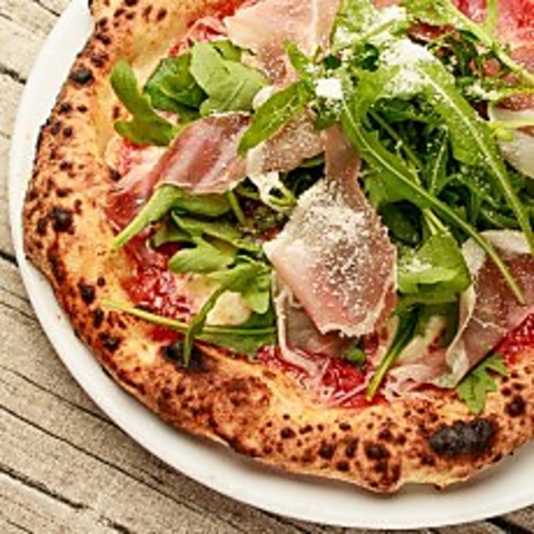生ハム、モッツァレラ、ルッコラ、トマトソース