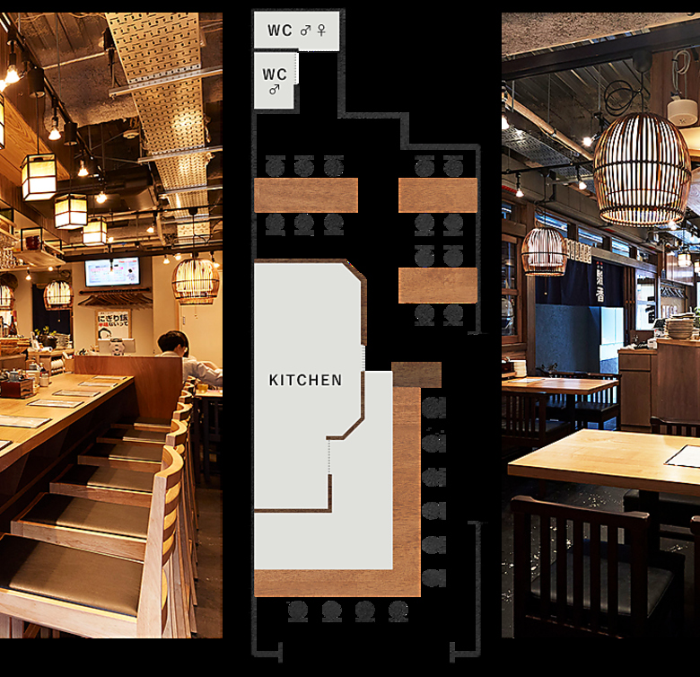 | お店の特長 | お店サイズ:~40席、客層:男女半々、1組当たり人数:~3人、来店ピーク時間:~19時 |