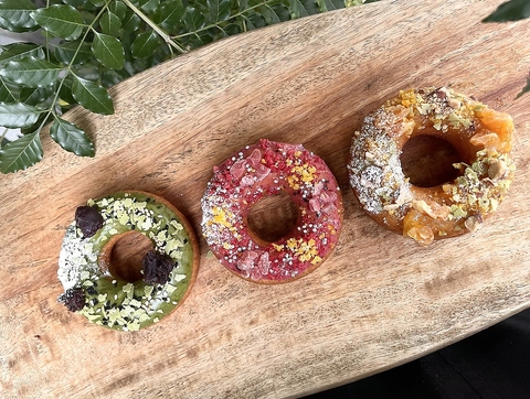 種類はベリー、ヨーグルトミカン、小倉の3種を週変わりでお出ししています。色鮮やかさが目を惹く人気のドーナツです。お土産にもおすすめです