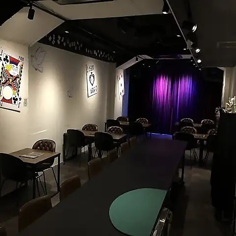 マジック体験ができる店内には、少人数から最大30名様まで対応可能なテーブル席をご用意しています♪壁には巨大なトランプが飾られ、一歩足を踏み入れればそこは日常を忘れる「地底の魔法レストラン」。デートや女子会、会社帰りの一杯はもちろん、大人数での宴会やパーティーにも最適です◎ゆったりと魔法のひとときを過ごしていただけます。