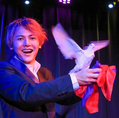日常の喧騒を忘れて、今日はお腹の底から大いに笑って過ごしませんか?本格的なステージと最新の音響照明設備を完備。至近距離で驚きを体験できるテーブルマジックはもちろん、光と音が交錯するダイナミックなステージショーまで、バリエーション豊かな演出をお楽しみいただけます。土日祝日はお昼の12時からショーが開演しています♪