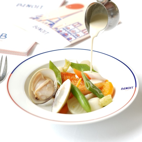 フランス各地方の伝統的な料理をモダンに昇華させた、日常使いのできるフランス料理をご用意。ブノワ自慢のパテ・アン・クルートや、カスレ、旬の食材を取り入れた一皿などをご提供。一品からでもご注文いただけるアラカルトもございます。お好きな品をそれぞれ選べるプリフィックススタイルのコースも3種類ご用意しております。
