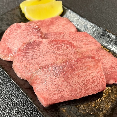 大人気の特上霜降りタンは是非ご賞味いただきたい自信の逸品です!タン特有の食感と贅沢な霜降りの旨みを一度にお楽しみいただけます♪※こちらは希少な部位のため数量限定で提供させていただいております。