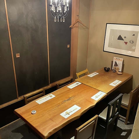 心から寛げる個室席。2名様~24名様ご利用いただける個室もご用意しております。落ち着いた雰囲気のこだわり空間は接待、女子会、各種宴会を選ばずご利用いただけます。他グループとの接触も防げ安心。ほかのお客様と顔を合わすことなくご利用いただけますので、大切なシーンにもぜひ。