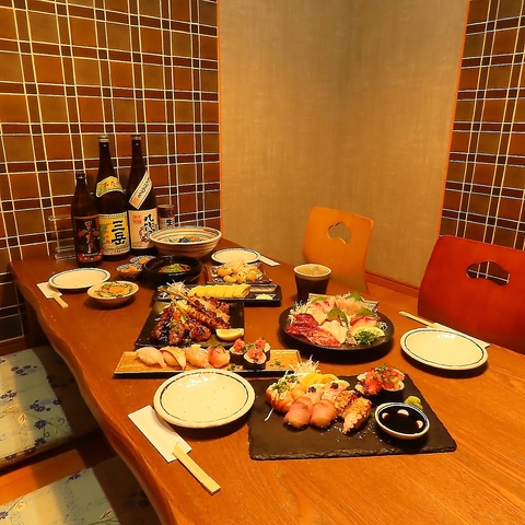 個室でゆったりと食べ放題を満喫!!お寿司、焼き鳥、一品、おつまみ、デザートも食べ放題♪そしてなんと!当店ではコースごとの突き出しにもこだわっております!刺身や寿司、馬刺し盛り合わせなどもご用意◎是非ご堪能ください!