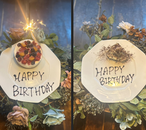 バースデーケーキやプレートなどお誕生日や記念日の御祝いもお手伝いさせて頂きます!プロジェクター完備なのでサプライズムービーの対応も可能です☆