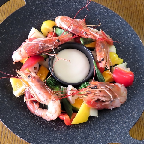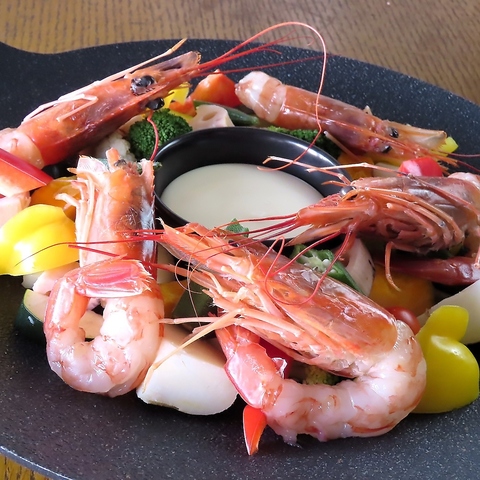【前日までの要予約】赤えび悪魔のガーリックチーズフォンデュ♪(4~5人前)えび好きにはたまらない逸品