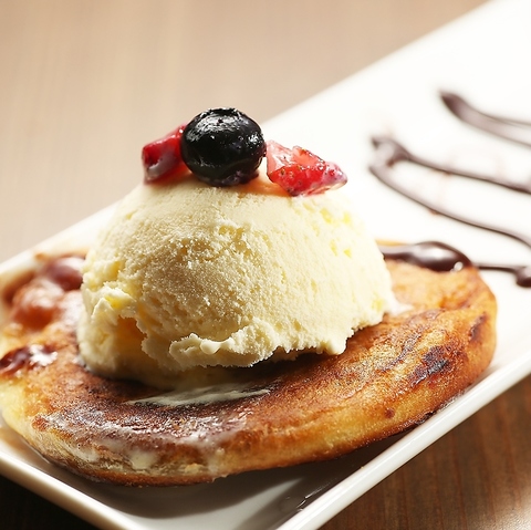 ホットックバニラアイスはあんず餡をもち粉で包んだモチモチデザートです!SNS映え間違いなしのホットックバニラアイスは盛り付けの拘りは勿論味も抜群に美味しい逸品ですのでぜひお召し上がり下さい♪