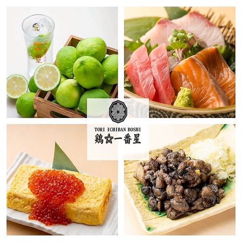 出汁巻きたまごいくら乗せや鮮度抜群のお刺身。期間限定サワーなど鶏☆一番星の看板商品が盛りだくさん♪アラカルト利用も◎コース利用では飲み放題もついております。また+500円で期間限定サワーや日本酒10種類も飲み放題に!幹事様、ご予約はお早めに♪