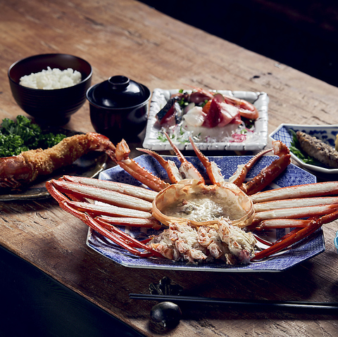 香住の紅ズワイガニの半分・ 本日の鮮魚 本日の一品 海老フライ・ごはん・汁物