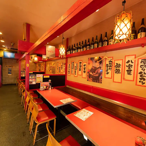 テーブル席もございます!1名様~ご利用可能!赤を基調とした店内で、地元の方々にも愛されるリーズナブルな居酒屋です!