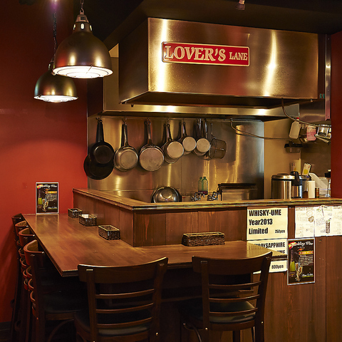 オープンキッチンのカウンター席は全部で14席ございます。お肉を焼いているところが見れたり、1人飲みでもロックを聴きながら楽しくお過ごしいただけます♪