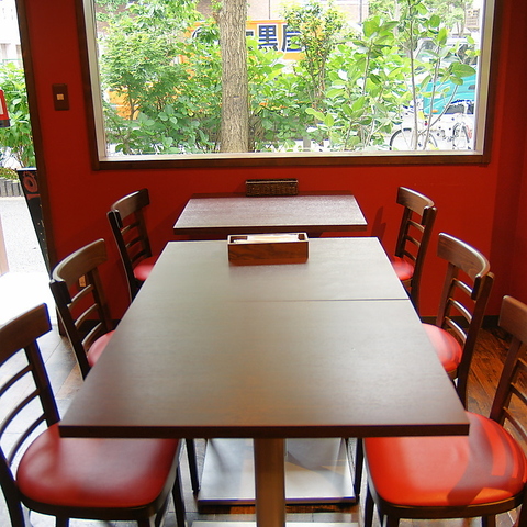 テーブル席はシンプルで使いやすく、初めての方でも過ごしやすい雰囲気!食事だけでなく、ちょっとしたカジュアルな会話にもぴったりです♪