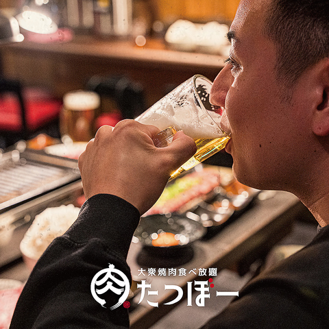 お手頃価格て食べ放題をお楽しみいただけます!焼きすきや豚タンをはじめ、ホルモン、牛カルビなど厳選したお肉だけを提供!焼肉屋の本気のカレーやキムチ、ナムル、ご飯、生卵も食べ放題です!宴会やお肉が食べたくなったらたつぼーで!