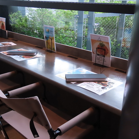 窓際のカウンター席は一人でゆったりとした時間を過ごしたい方にはピッタリな席となっております。もちろん、デートや、友人とランチなどにも最適!