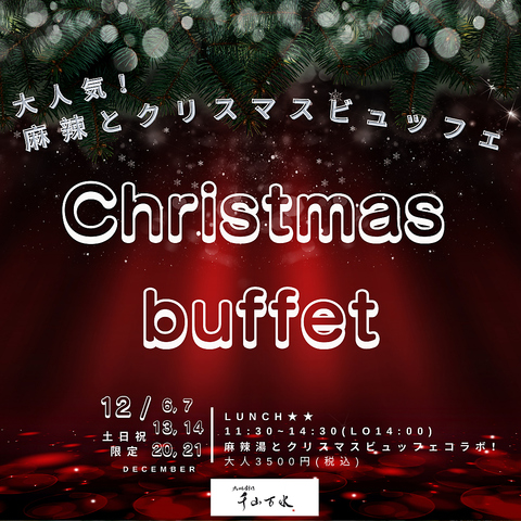 大人気、麻辣湯とクリスマスビュッフェ♪クリスマスを感じる食材とお料理をごゆっくりお楽しみください。