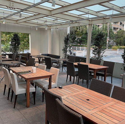 【開放的なテラス席も◎】心地よい風を感じながら食事を楽しめる開放的なテラス席♪昼は陽光が差し込む爽やかな空間、夜はライトアップがロマンチックな雰囲気に◎デートや女子会にぴったり!
