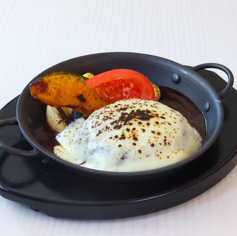 特製デミグラスソースにたっぷりのチーズをかけた贅沢ハンバーグ。