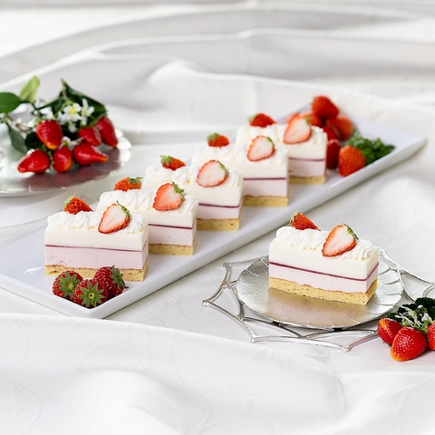 甘酸っぱいいちごのムースと、口どけなめらかで濃厚、まろやかな甘みのホワイトチョコムースを、アーモンド入り特製スポンジと重ねた三層仕立て。こだわりのシャンティクリームとフレッシュないちごを添え、いちごのおいしさをたっぷり楽しめるIMONO KI TCHEN おすすめスイーツです。