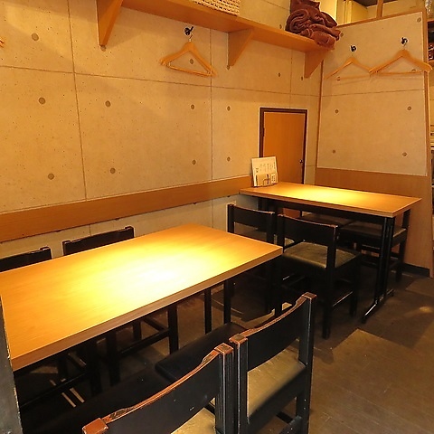 【テーブル席】 4名様まで座ることができるテーブル席を2卓ご用意しています。宴会・女子会には最適です!大勢での宴会にはぜひご利用下さい!宴会向けのお得なコース料理もご用意しております!