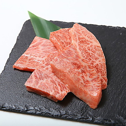 肉の霜降りのバランスが絶妙な最上級カルビ。上品でとろけるような食感。