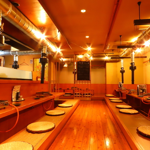人数に合わせて自由にレイアウト可能な掘りごたつ座敷席は、最大22名様までご利用可能です!足を伸ばしてくつろげるので、小さなお子様連れのファミリー層や、4~5名様の中団体様も安心してお食事をお楽しみいただけます♪忘年会などの各種宴会に対応したお得なコースもご用意可能ですので、席のご相談やご予約をお待ちしております!
