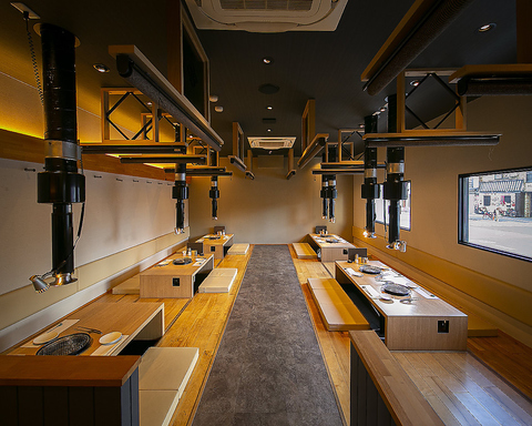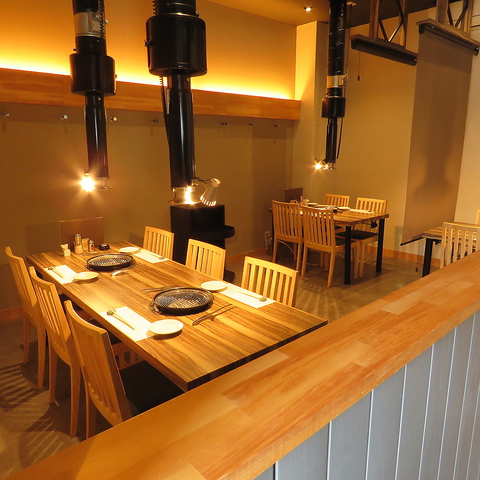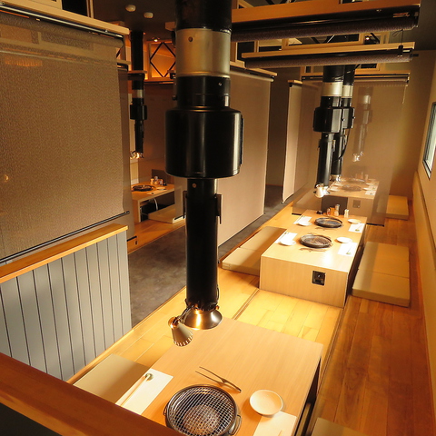 清潔感があり空間にゆとりのある当店。店内には、小上がりの掘りごたつ席、お靴のままご利用いただけるテーブル席、店内奥の完全個室の3エリアをご用意しております。お席ごとにコンロを設置し、その上にはしっかりした換気口を設置しているので換気環境は抜群。座布団やテーブルの消毒は徹底しておこなっております。