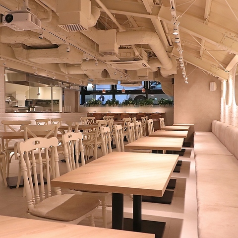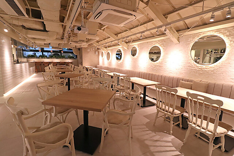 | テーブル | 6名様×1 | 明るい木のテーブルと白を基調としたインテリアで、開放感あふれる空間を演出。ゆったりとした配置により、友人との会話や食事を楽しむのに最適です。リラックスした雰囲気の中、心地よいひとときをお過ごしいただけます。 |