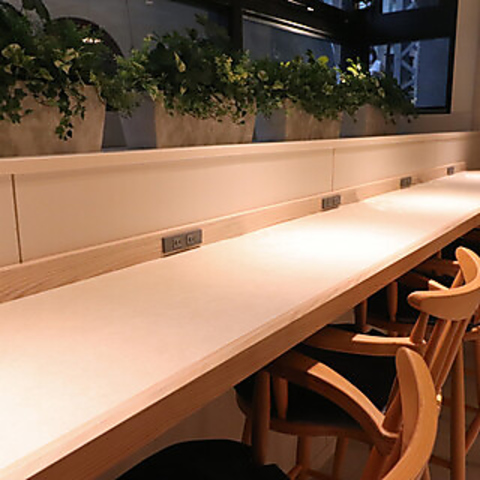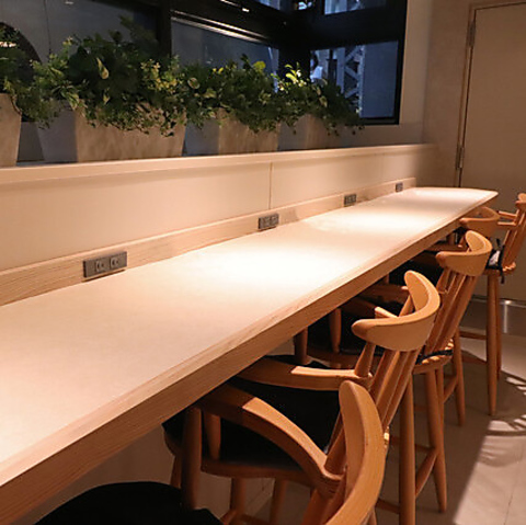 | カウンター | 1名様×1 | カウンター席は、シンプルで洗練されたデザインが魅力です。一人でも気軽に利用でき、手元に集中して食事や作業を楽しめます。周囲の緑が心地よい空間を演出し、リラックスした時間を過ごすことができます。お一人様も大歓迎です! |