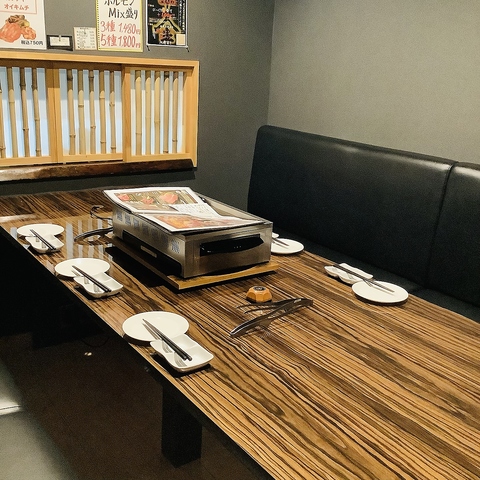 人目を気にする事なく、友人や同僚と無煙ロースターを囲みながら焼肉をお楽しみください。もちろん、換気設備も充実しており、消毒やスタッフの検温など感染対策もバッチリです。安心してご来店下さい。