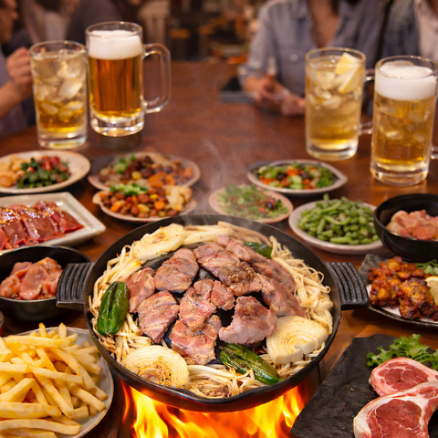 ラム肉の希少部位や一品料理(国産野菜やフライドポテト、ライスなど)も食べ放題の大満足コース★メニュー詳細はコースページをご確認ください!小学生半額/未就学児無料 ※ソフトドリンク飲み放題付き