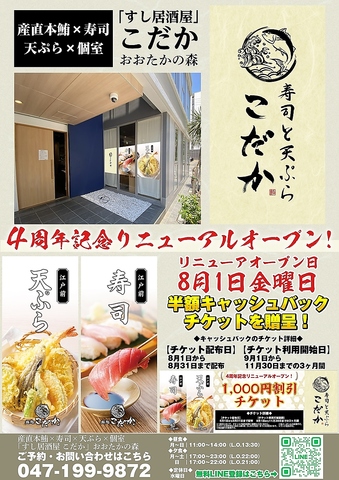 お店に行く前にすし居酒屋こだか おおたかの森のクーポン情報をチェック!